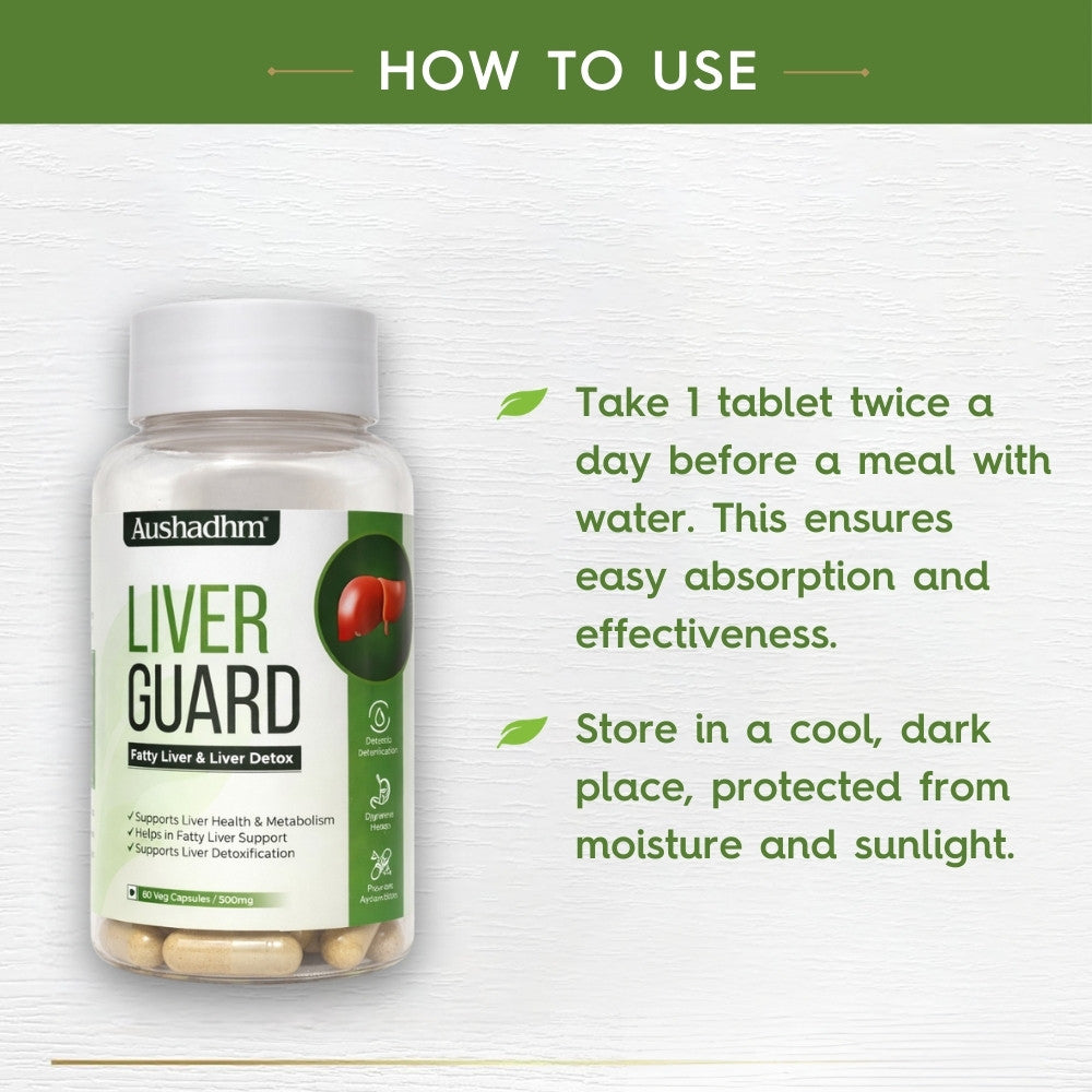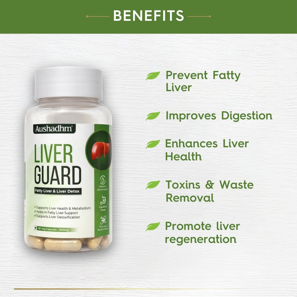 Liver Guard is a natural Ayurvedic supplement formulated to support liver detoxification, fatty liver management, and overall liver health. It helps improve digestion, metabolism, and supports the liver’s natural detox process using herbal ingredients.